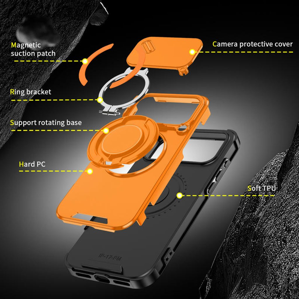 Camslide Stand obal, iPhone 17 Pro Max, oranžový