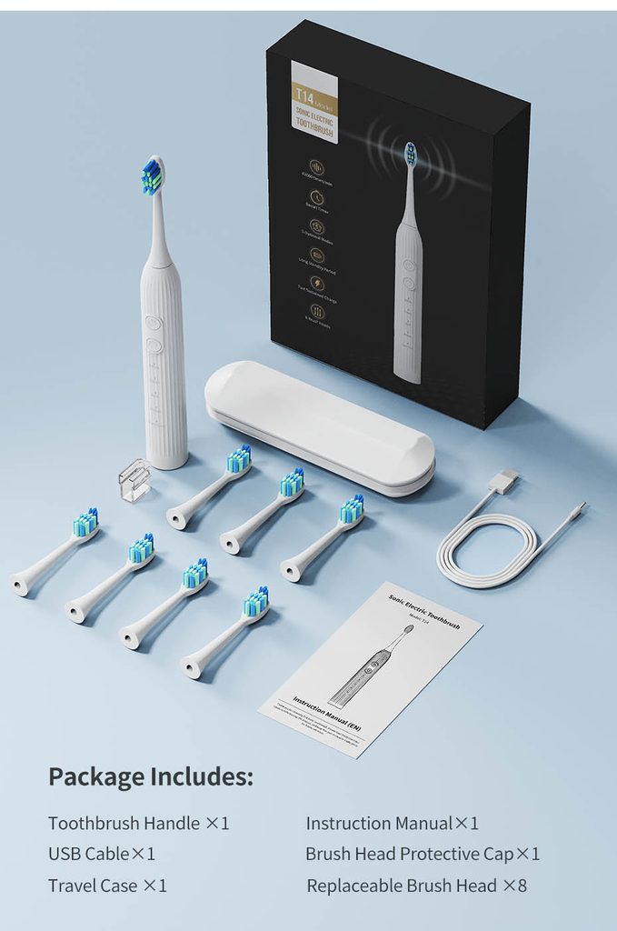 Sonický elektrický zubní kartáček se sadou 8 hlavic, 45 000 vibrací/min, 5 režimů, černý